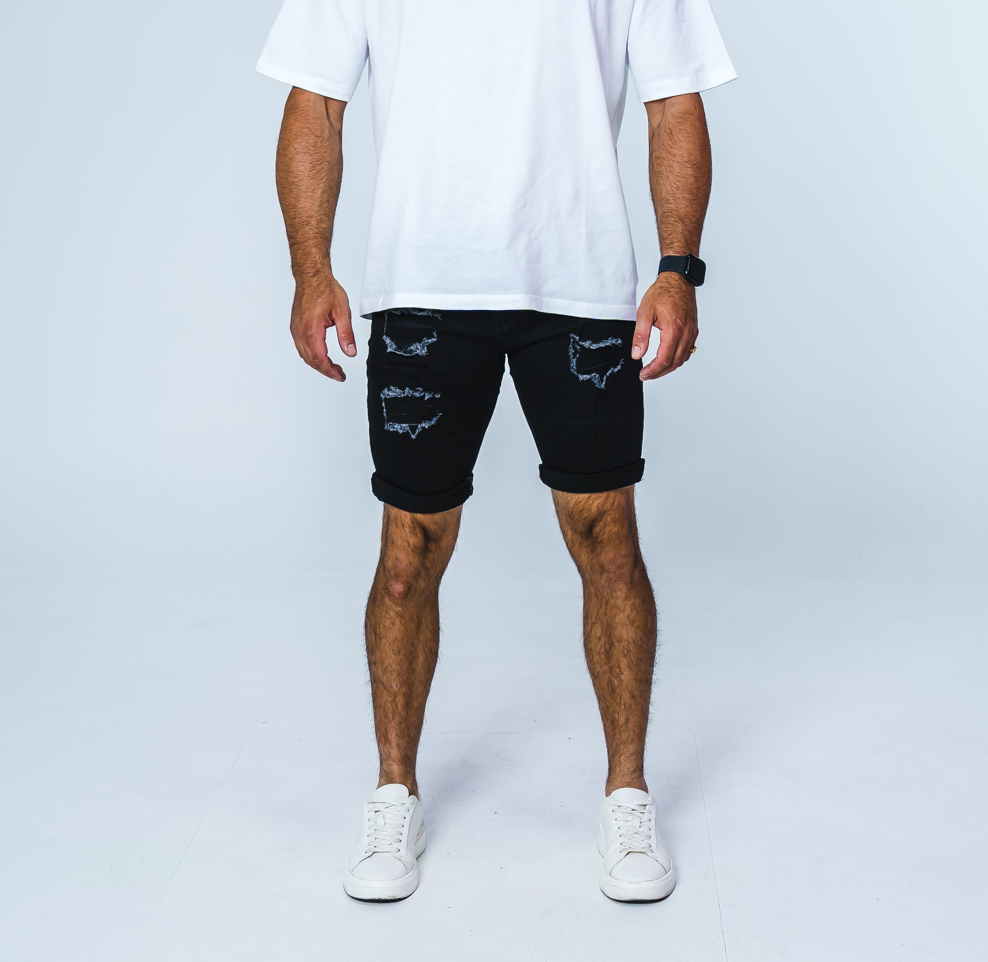Black Fitted Ripped Jean Short
