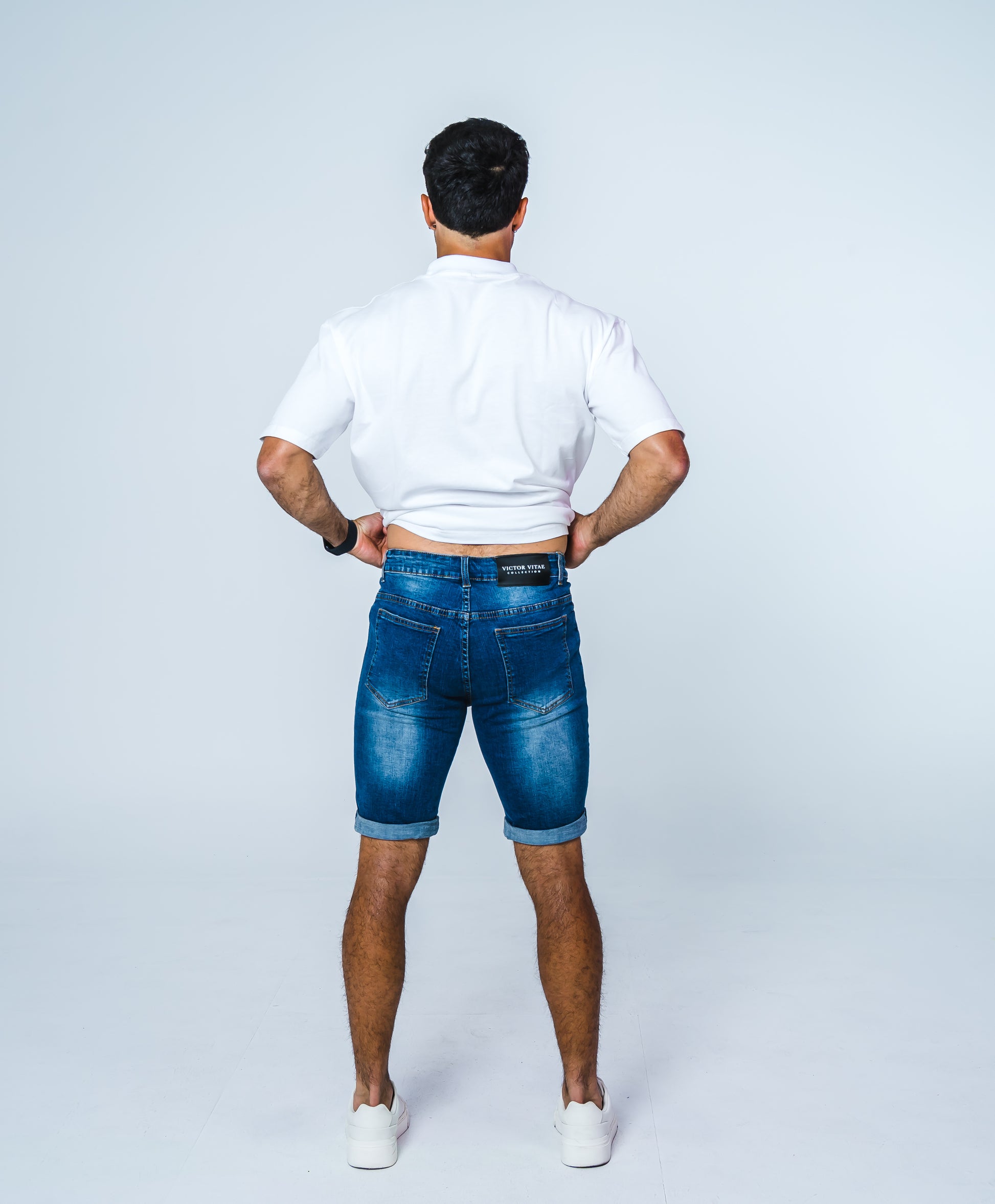 Elevate your style and comfort with Victor Vitae's Dark Blue Fitted Ripped Jean short, where fashion, comfort, and uncompromising quality seamlessly converge. Don't miss the opportunity to experience the future of denim. Order your pair today and step into modern denim excellence.
